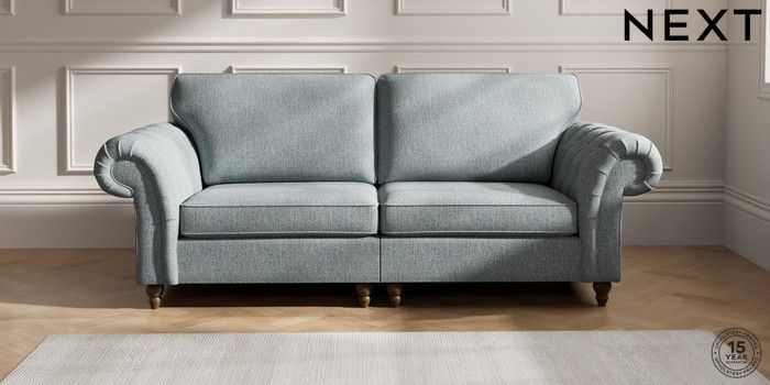 7.2.10 Gosford Highback II Deep Sit 4 Seater Sofa Chunky Weave Mid Blue Low Turned - Mid | Made Click here to use our website with more accessibility support, for example screen readers