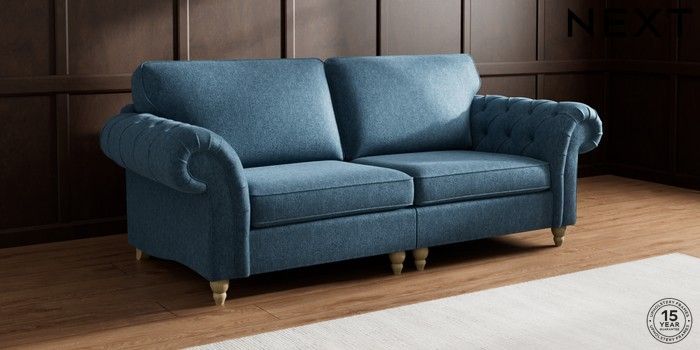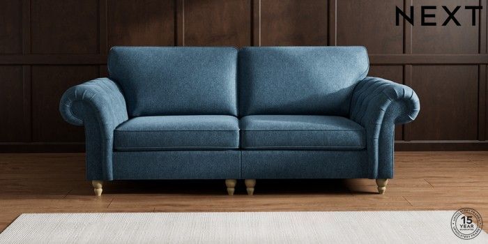 7.2.10 Gosford Highback II Deep Sit 4 Seater Sofa Cotswold Chenille Dark Blue Low Turned - Light | Made Click here to use our website with more accessibility support, for example screen readers