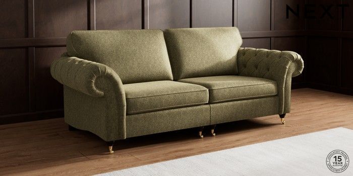 7.2.10 Gosford Highback II Deep Sit 4 Seater Sofa Cotswold Chenille Dark Green Castor - Dark | Made Click here to use our website with more accessibility support, for example screen readers