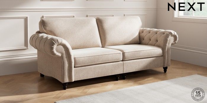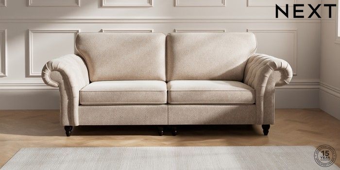 7.2.10 Gosford Highback II Deep Sit 4 Seater Sofa Cotswold Chenille Light Natural Low Turned - Dark | Made Click here to use our website with more accessibility support, for example screen readers