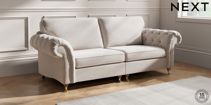 7.2.10 Gosford Highback II Deep Sit 4 Seater Sofa Cotswold Chenille Oyster Castor - Light | Made Click here to use our website with more accessibility support, for example screen readers