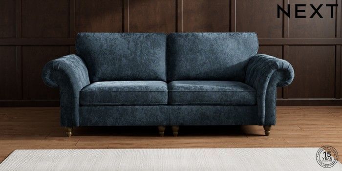 7.2.10 Gosford Highback II Deep Sit 4 Seater Sofa Distressed Velour Midnight Blue Low Turned - Mid | Made Click here to use our website with more accessibility support, for example screen readers