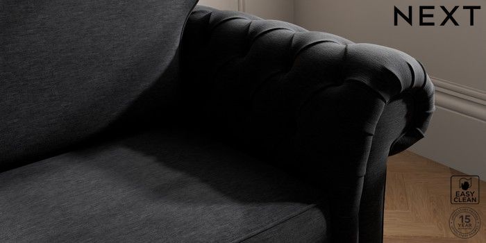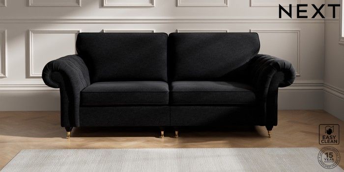 7.2.10 Gosford Highback II Deep Sit 4 Seater Sofa Fine Chenille Easy Clean Black Castor - Dark | Made Click here to use our website with more accessibility support, for example screen readers