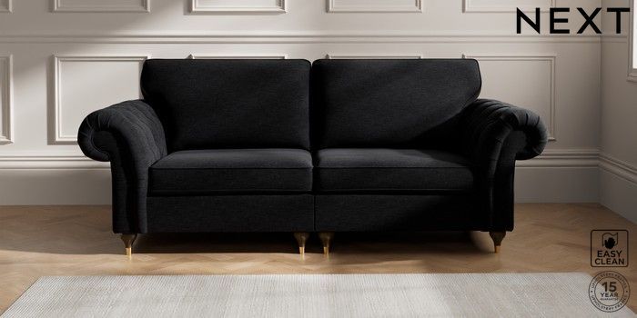 7.2.10 Gosford Highback II Deep Sit 4 Seater Sofa Fine Chenille Easy Clean Black Modern Turned Metal Cap - Mid | Made Click here to use our website with more accessibility support, for example screen readers