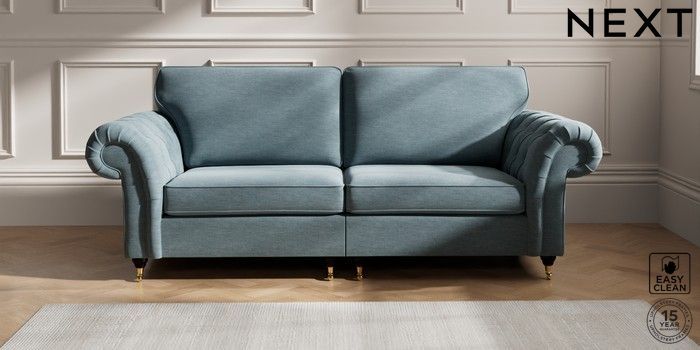 7.2.10 Gosford Highback II Deep Sit 4 Seater Sofa Fine Chenille Easy Clean Mid Blue Castor - Dark | Made Click here to use our website with more accessibility support, for example screen readers