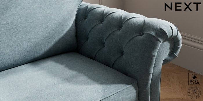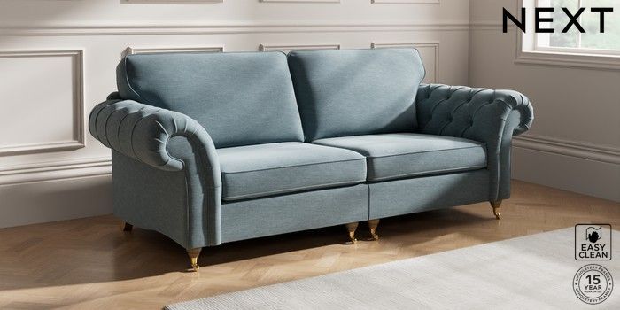 7.2.10 Gosford Highback II Deep Sit 4 Seater Sofa Fine Chenille Easy Clean Mid Blue Castor - Light | Made Click here to use our website with more accessibility support, for example screen readers