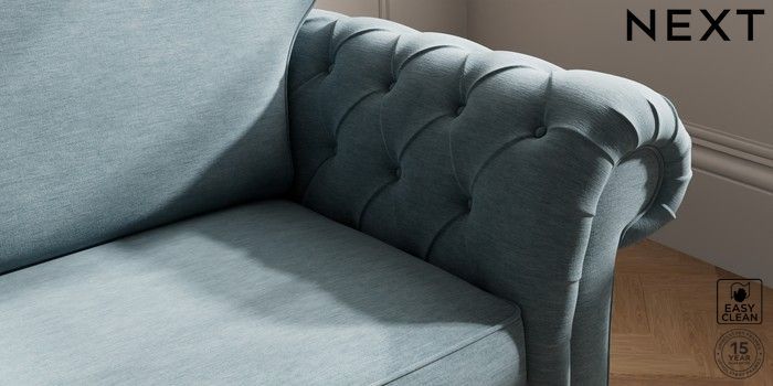 7.2.10 Gosford Highback II Deep Sit 4 Seater Sofa Fine Chenille Easy Clean Mid Blue Low Turned - Light | Made Click here to use our website with more accessibility support, for example screen readers