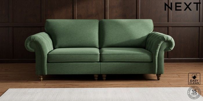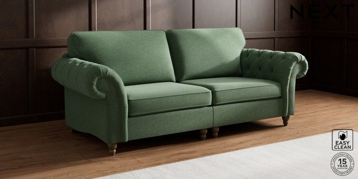 7.2.10 Gosford Highback II Deep Sit 4 Seater Sofa Fine Chenille Easy Clean Mid Khaki Green Low Turned - Mid | Made Click here to use our website with more accessibility support, for example screen readers