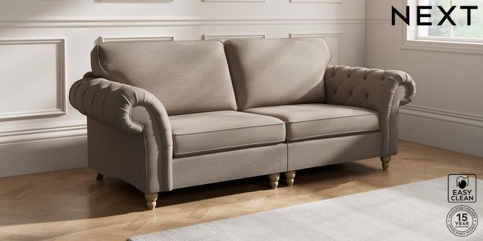 7.2.10 Gosford Highback II Deep Sit 4 Seater Sofa Fine Chenille Easy Clean Mid Taupe Brown Low Turned - Light | Made Click here to use our website with more accessibility support, for example screen readers