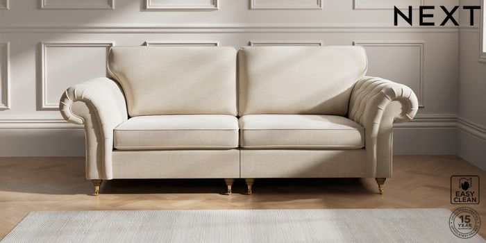 7.2.10 Gosford Highback II Deep Sit 4 Seater Sofa Fine Chenille Easy Clean Oyster Castor - Light | Made Click here to use our website with more accessibility support, for example screen readers