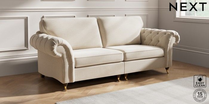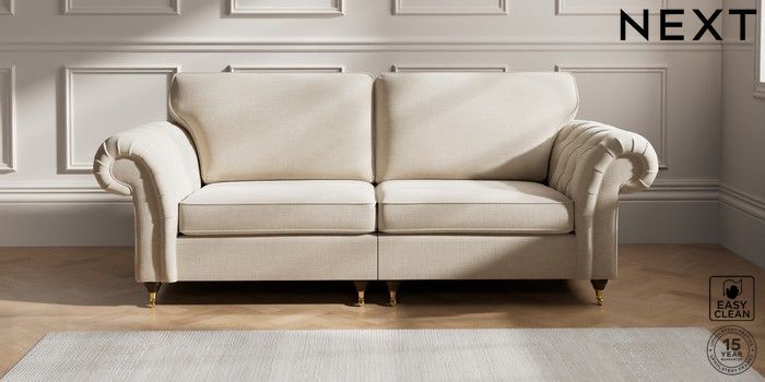 7.2.10 Gosford Highback II Deep Sit 4 Seater Sofa Fine Chenille Easy Clean Oyster Castor - Mid | Made Click here to use our website with more accessibility support, for example screen readers