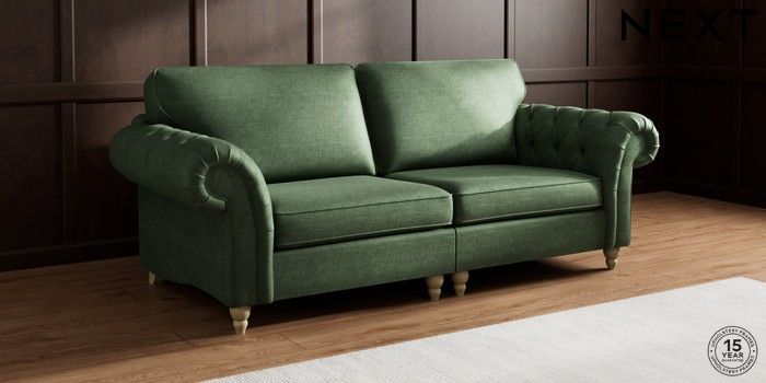 7.2.10 Gosford Highback II Deep Sit 4 Seater Sofa Luxe Chenille Dark Green Low Turned - Light | Made Click here to use our website with more accessibility support, for example screen readers