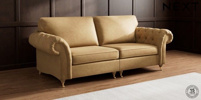 The Gosford High Back sofa brings all the charm and elegance of the classic Gosford, with added comfort thanks to its higher back cushions. The gorgeous deep buttoning on the arms really makes a style statement. This sofa features our special "Firmer Sit" seat cushions, which use a high-density foam core surrounded by soft toppers. This smart design provides ultimate support, lasting durability, and ensures the cushions always spring back to their tailored look. They're also wonderfully low-maintenance. For an extra touch of luxury, we've included plush scatter cushions filled with a rich fibre mix. The seat cushions are reversible too, so a quick flip and plump will keep them looking their best. Make the Gosford High Back uniquely yours by choosing from a huge range of fabrics and a choice of feet.