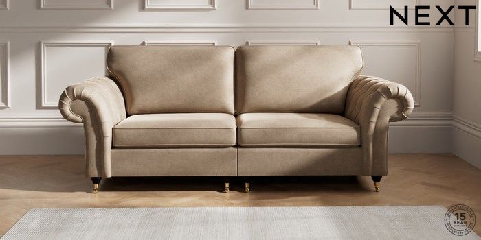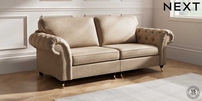 The Gosford High Back sofa brings all the charm and elegance of the classic Gosford, with added comfort thanks to its higher back cushions. The gorgeous deep buttoning on the arms really makes a style statement. This sofa features our special "Firmer Sit" seat cushions, which use a high-density foam core surrounded by soft toppers. This smart design provides ultimate support, lasting durability, and ensures the cushions always spring back to their tailored look. They're also wonderfully low-maintenance. For an extra touch of luxury, we've included plush scatter cushions filled with a rich fibre mix. The seat cushions are reversible too, so a quick flip and plump will keep them looking their best. Make the Gosford High Back uniquely yours by choosing from a huge range of fabrics and a choice of feet.