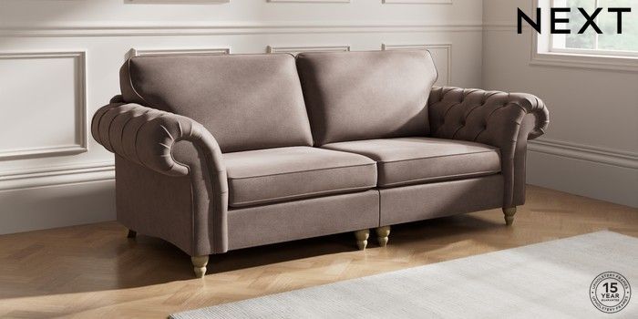7.2.10 Gosford Highback II Deep Sit 4 Seater Sofa Luxe Chenille Mink Brown Low Turned - Light | Made Click here to use our website with more accessibility support, for example screen readers