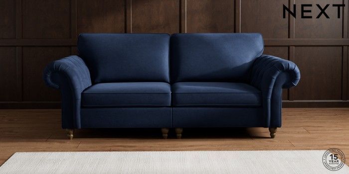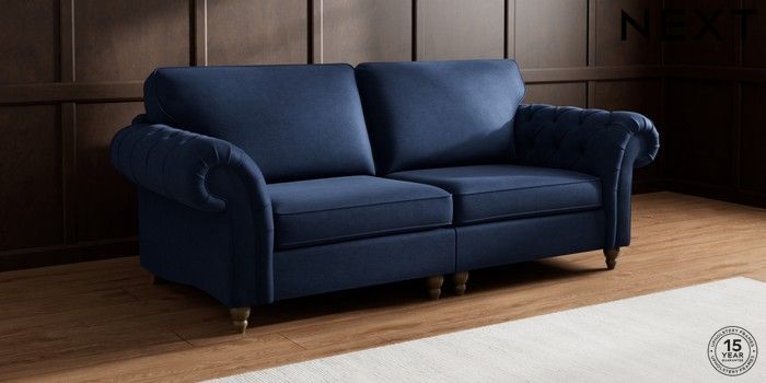 7.2.10 Gosford Highback II Deep Sit 4 Seater Sofa Luxe Chenille Navy Blue Low Turned - Mid | Made Click here to use our website with more accessibility support, for example screen readers