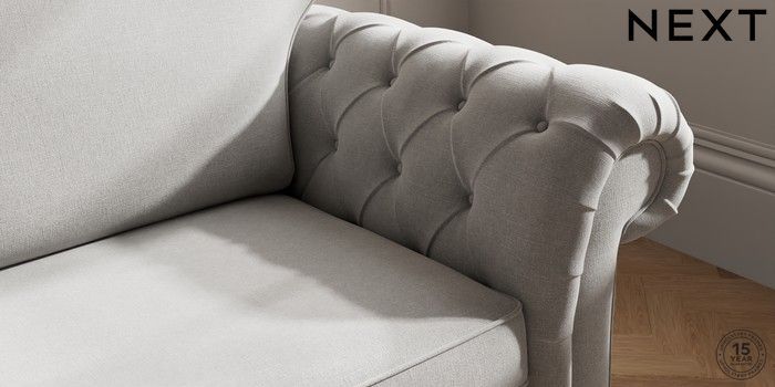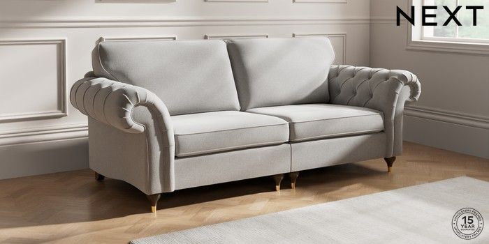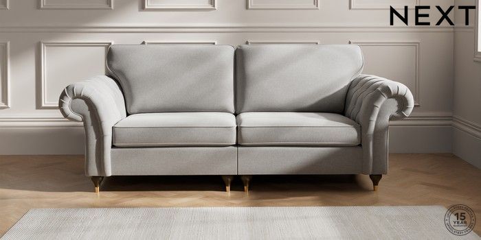 7.2.10 Gosford Highback II Deep Sit 4 Seater Sofa Natural Mix Light Grey Modern Turned Metal Cap - Mid | Made Click here to use our website with more accessibility support, for example screen readers