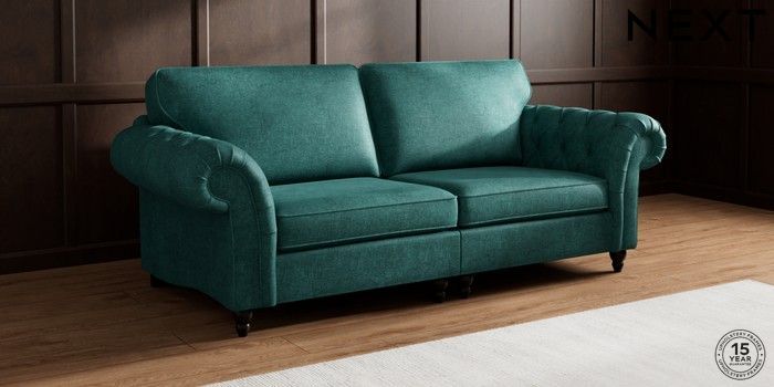 7.2.10 Gosford Highback II Deep Sit 4 Seater Sofa Plush Chenille Dark Teal Green Low Turned - Dark | Made Click here to use our website with more accessibility support, for example screen readers