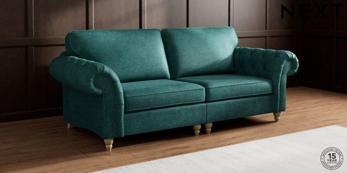7.2.10 Gosford Highback II Deep Sit 4 Seater Sofa Plush Chenille Dark Teal Green Low Turned - Light | Made Click here to use our website with more accessibility support, for example screen readers
