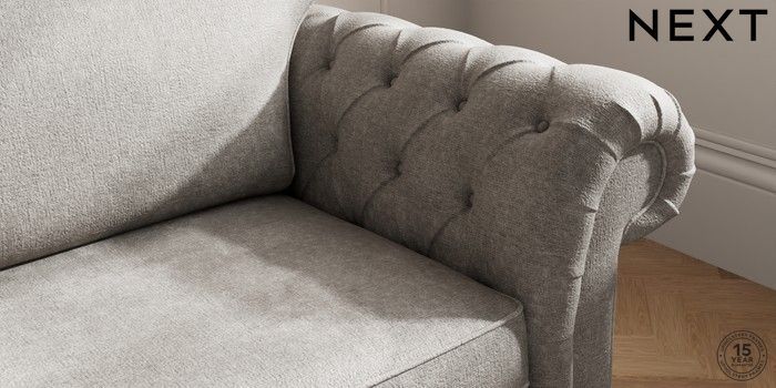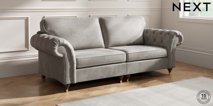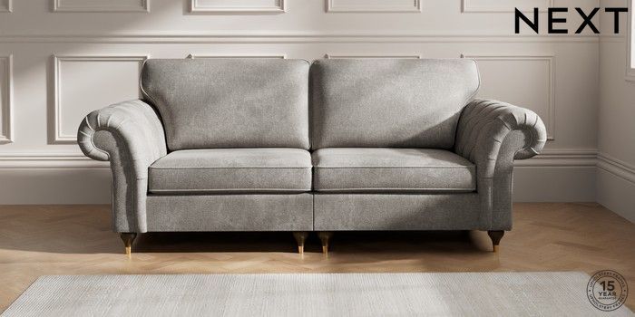 7.2.10 Gosford Highback II Deep Sit 4 Seater Sofa Plush Chenille Light Grey Modern Turned Metal Cap - Mid | Made Click here to use our website with more accessibility support, for example screen readers