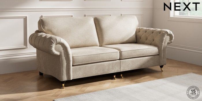7.2.10 Gosford Highback II Deep Sit 4 Seater Sofa Plush Chenille Light Natural Castor - Dark | Made Click here to use our website with more accessibility support, for example screen readers