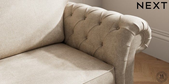 7.2.10 Gosford Highback II Deep Sit 4 Seater Sofa Plush Chenille Light Natural Castor - Mid | Made Click here to use our website with more accessibility support, for example screen readers
