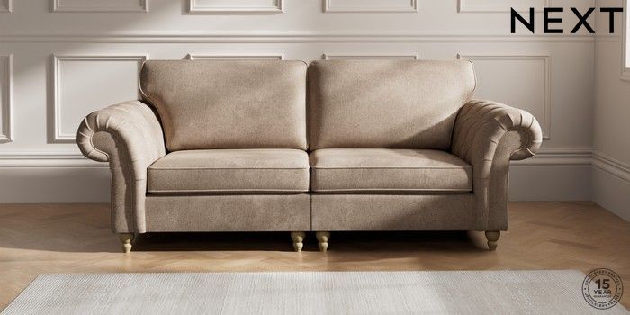7.2.10 Gosford Highback II Deep Sit 4 Seater Sofa Plush Chenille Mid Natural Low Turned - Light | Made Click here to use our website with more accessibility support, for example screen readers