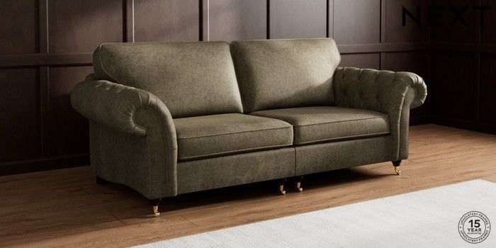 7.2.10 Gosford Highback II Deep Sit 4 Seater Sofa Plush Chenille Moss Green Castor - Dark | Made Click here to use our website with more accessibility support, for example screen readers