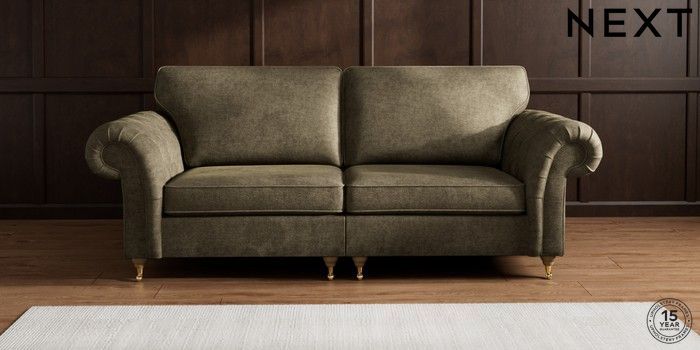 7.2.10 Gosford Highback II Deep Sit 4 Seater Sofa Plush Chenille Moss Green Castor - Light | Made Click here to use our website with more accessibility support, for example screen readers
