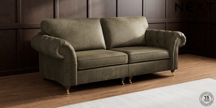 7.2.10 Gosford Highback II Deep Sit 4 Seater Sofa Plush Chenille Moss Green Castor - Mid | Made Click here to use our website with more accessibility support, for example screen readers