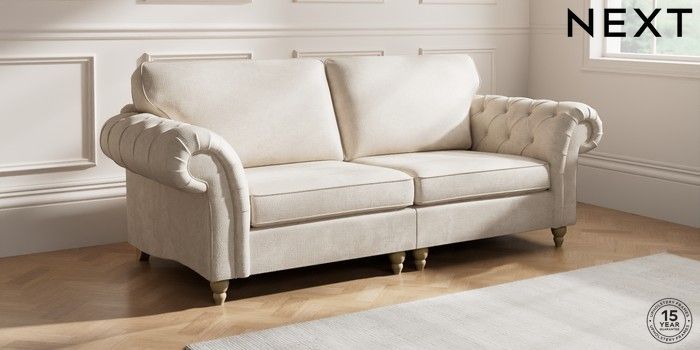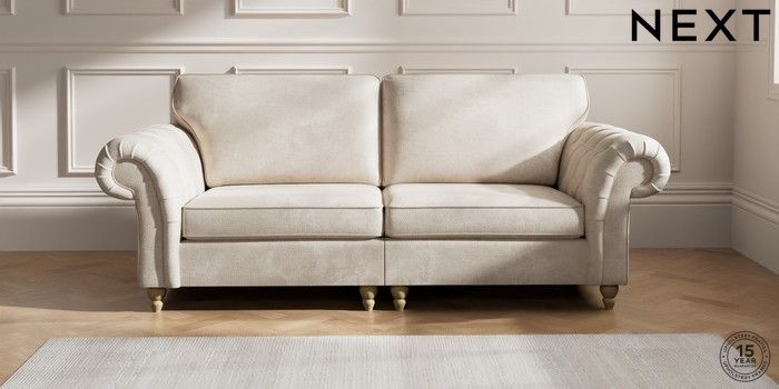 7.2.10 Gosford Highback II Deep Sit 4 Seater Sofa Plush Chenille Oyster Low Turned - Light | Made Click here to use our website with more accessibility support, for example screen readers