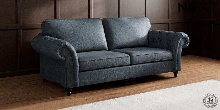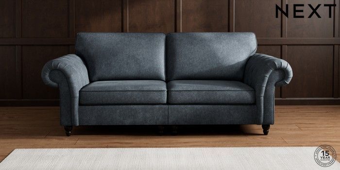 7.2.10 Gosford Highback II Deep Sit 4 Seater Sofa Plush Chenille Slate Blue Low Turned - Dark | Made Click here to use our website with more accessibility support, for example screen readers