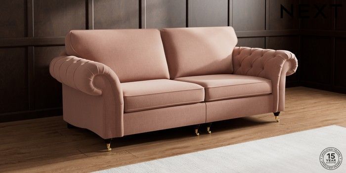 7.2.10 Gosford Highback II Deep Sit 4 Seater Sofa Relaxed Linen Look Light Rust Brown Castor - Dark | Made Click here to use our website with more accessibility support, for example screen readers