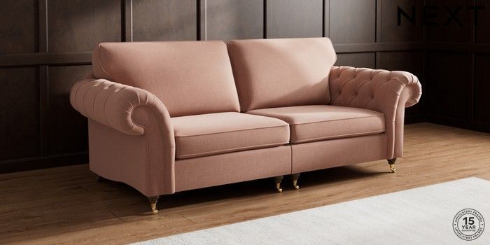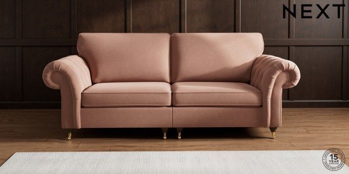 7.2.10 Gosford Highback II Deep Sit 4 Seater Sofa Relaxed Linen Look Light Rust Brown Castor - Mid | Made Click here to use our website with more accessibility support, for example screen readers