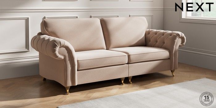 7.2.10 Gosford Highback II Deep Sit 4 Seater Sofa Relaxed Linen Look Mid Natural Castor - Light | Made Click here to use our website with more accessibility support, for example screen readers