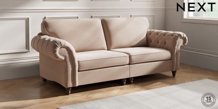 7.2.10 Gosford Highback II Deep Sit 4 Seater Sofa Relaxed Linen Look Mid Natural Low Turned - Mid | Made Click here to use our website with more accessibility support, for example screen readers