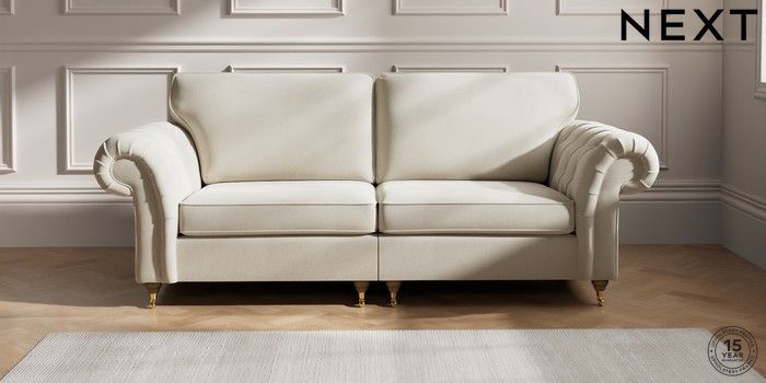The Gosford High Back sofa brings all the charm and elegance of the classic Gosford, with added comfort thanks to its higher back cushions. The gorgeous deep buttoning on the arms really makes a style statement. This sofa features our special "Firmer Sit" seat cushions, which use a high-density foam core surrounded by soft toppers. This smart design provides ultimate support, lasting durability, and ensures the cushions always spring back to their tailored look. They're also wonderfully low-maintenance. For an extra touch of luxury, we've included plush scatter cushions filled with a rich fibre mix. The seat cushions are reversible too, so a quick flip and plump will keep them looking their best. Make the Gosford High Back uniquely yours by choosing from a huge range of fabrics and a choice of feet.