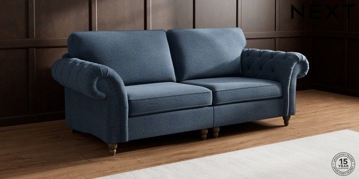 7.2.10 Gosford Highback II Deep Sit 4 Seater Sofa Ripple Chenille Dark Blue Low Turned - Mid | Made Click here to use our website with more accessibility support, for example screen readers