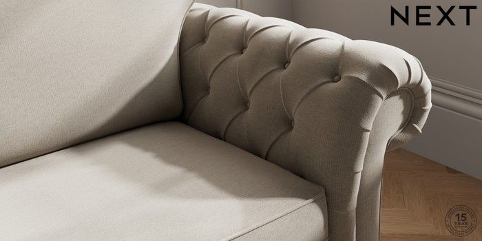 7.2.10 Gosford Highback II Deep Sit 4 Seater Sofa Ripple Chenille Light Natural Modern Turned Metal Cap - Mid | Made Click here to use our website with more accessibility support, for example screen readers