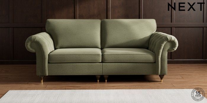 7.2.10 Gosford Highback II Deep Sit 4 Seater Sofa Ripple Chenille Mid Moss Green Modern Turned Metal Cap - Mid | Made Click here to use our website with more accessibility support, for example screen readers