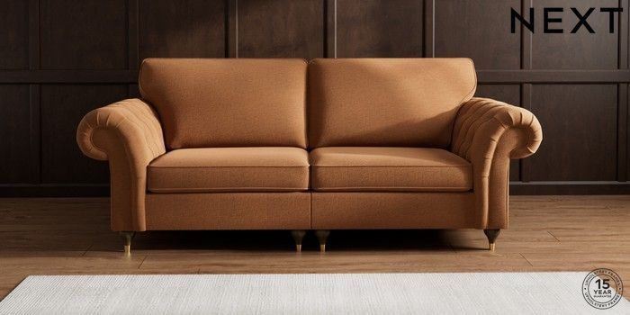 7.2.10 Gosford Highback II Deep Sit 4 Seater Sofa Ripple Chenille Mid Rust Brown Modern Turned Metal Cap - Mid | Made Click here to use our website with more accessibility support, for example screen readers