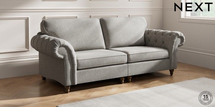 7.2.10 Gosford Highback II Deep Sit 4 Seater Sofa Tweedy Chenille Mid Grey Low Turned - Mid | Made Click here to use our website with more accessibility support, for example screen readers
