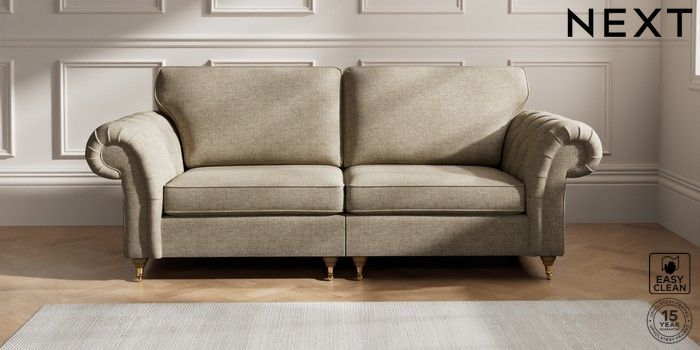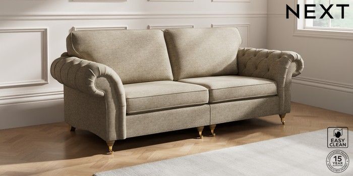 7.2.10 Gosford Highback II Deep Sit 4 Seater Sofa Woven Chenille Easy Clean Mid Natural Castor - Light | Made Click here to use our website with more accessibility support, for example screen readers