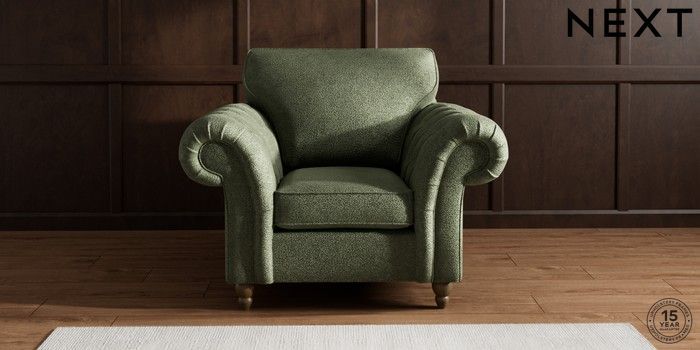 7.2.10 Gosford Highback II Deep Sit Armchair Boucle Chenille Dark Moss Green Low Turned - Mid | Made Click here to use our website with more accessibility support, for example screen readers
