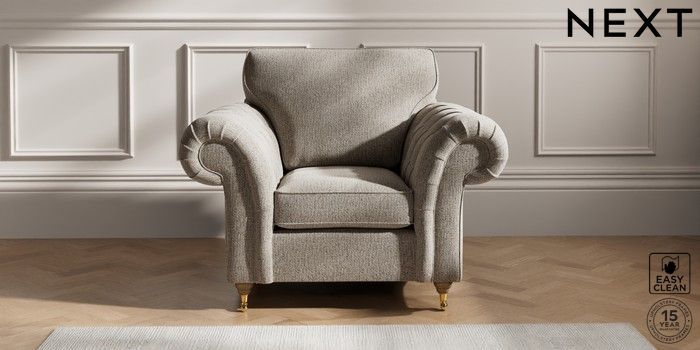 7.2.10 Gosford Highback II Deep Sit Armchair Chunky Boucle Easy Clean Dove Castor - Light | Made Click here to use our website with more accessibility support, for example screen readers