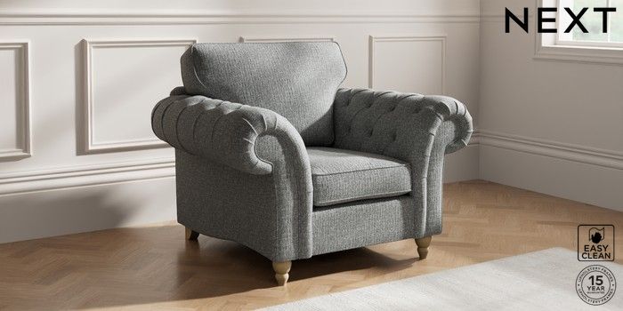 7.2.10 Gosford Highback II Deep Sit Armchair Chunky Boucle Easy Clean Mid Grey Low Turned - Light | Made Click here to use our website with more accessibility support, for example screen readers