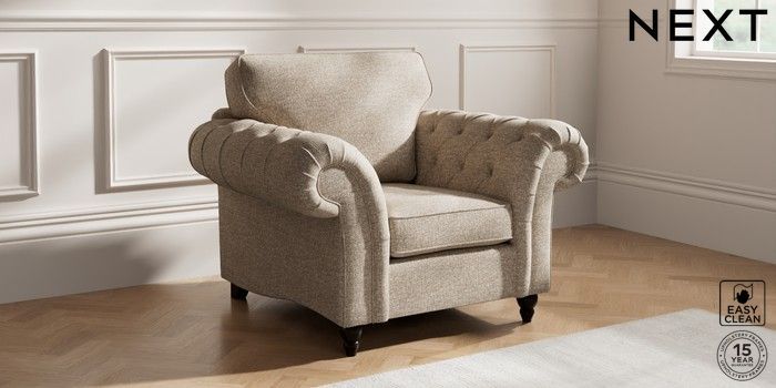 7.2.10 Gosford Highback II Deep Sit Armchair Chunky Boucle Easy Clean Mid Natural Low Turned - Dark | Made Click here to use our website with more accessibility support, for example screen readers