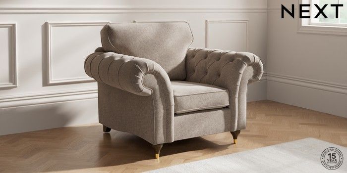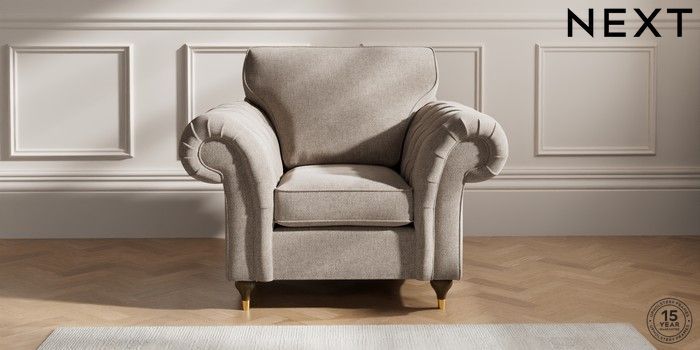 7.2.10 Gosford Highback II Deep Sit Armchair Chunky Chenille Light Dove Modern Turned Metal Cap - Mid | Made Click here to use our website with more accessibility support, for example screen readers