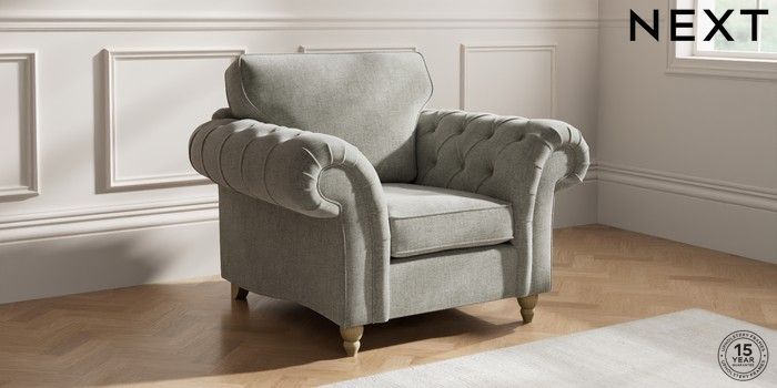 7.2.10 Gosford Highback II Deep Sit Armchair Chunky Chenille Light Grey Low Turned - Light | Made Click here to use our website with more accessibility support, for example screen readers