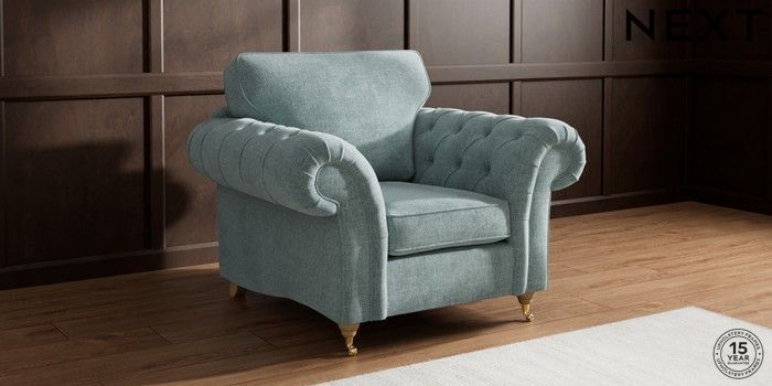 7.2.10 Gosford Highback II Deep Sit Armchair Chunky Chenille Light Teal Green Castor - Light | Made Click here to use our website with more accessibility support, for example screen readers